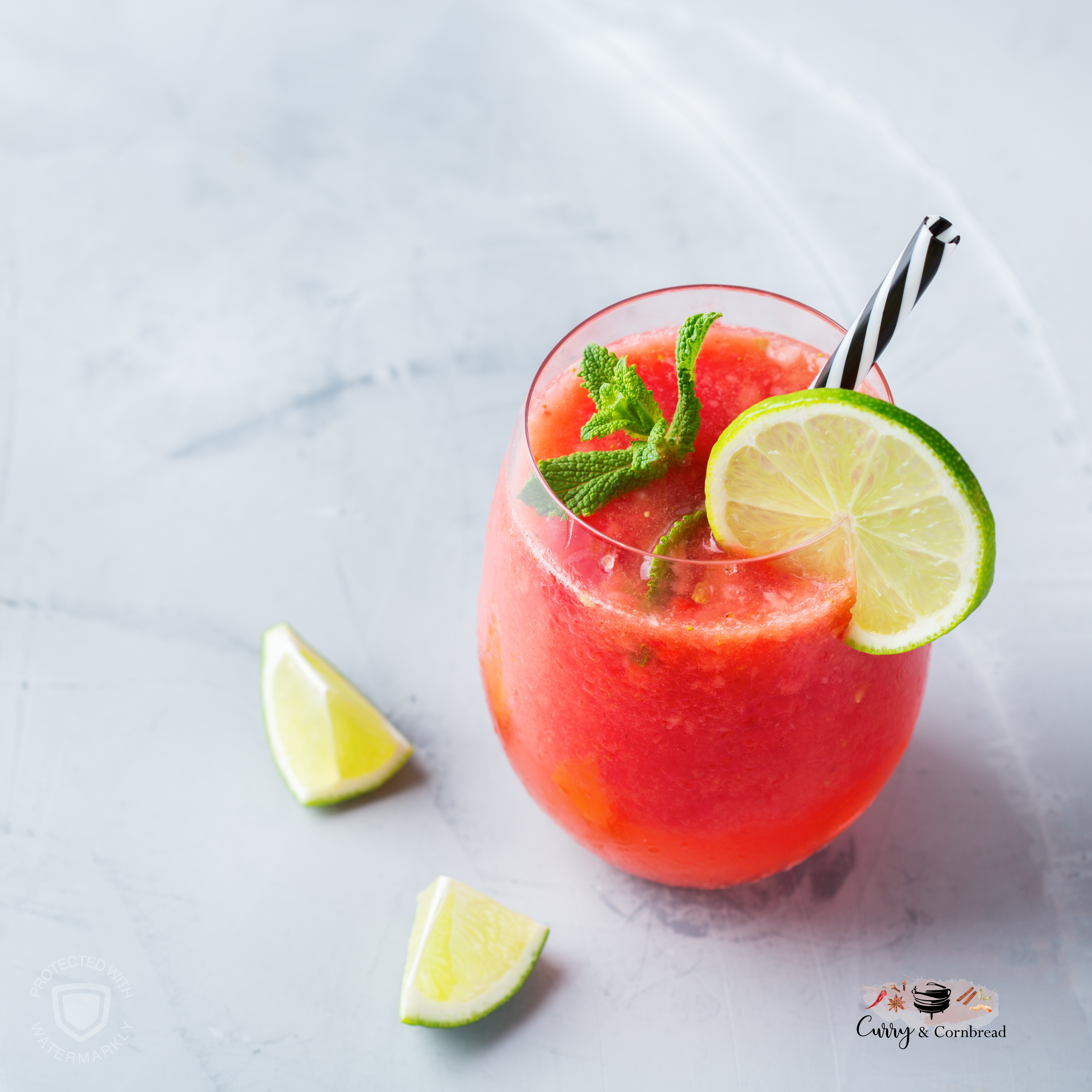 If you have a picky child, this drink is for you. Even I could live on this drink this summer! I am totally in love with it and when you use a good watermelon it just makes it that much better! I am just terrible at picking the perfect watermelon. I follow the recommended tips from my mom but still sometime end up with duds. I think its just luck of the draw right? What I love about this drink is that its healthy and made with readily available seasonal ingredients and takes less than 5 minutes to make from start to cleanup.