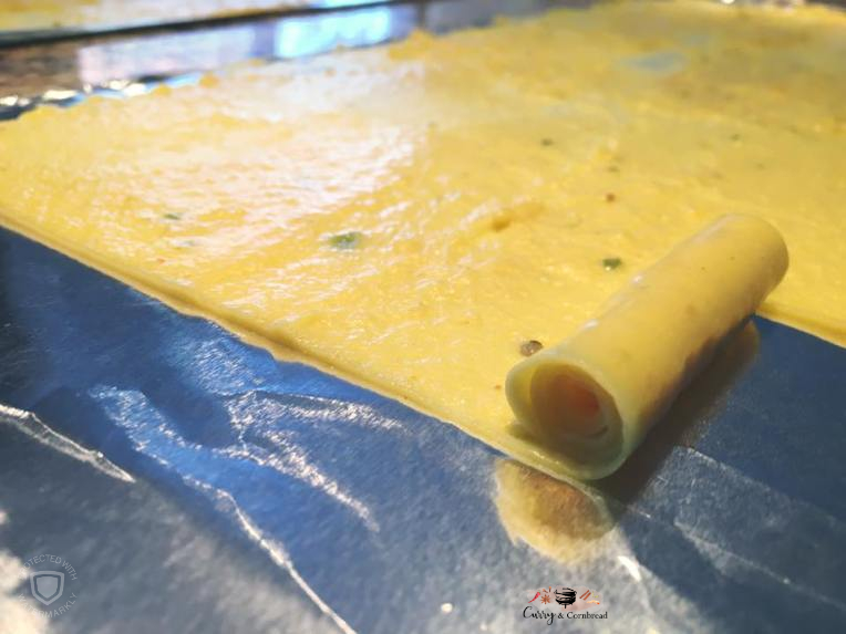 Getting the batter ready is the quickest part of the recipe. The whole process of making Khandvi should not take more than 15 minutes. The first tricky part is to know when the batter is fully cooked and has the right consistency. The second tricky part is to spread it evenly and quickly into a thin layer on foil – once the batter cools it will be really hard to evenly spread the batter. Let the thin layer cool down on the foil and then start rolling it into rolls. Thin layers are very delicate and if you hurry, it will break apart. Patience is not always my strong point! But if I can do it, then I am sure you can also! Once you get it right, rolling Khandvi is fun! If you haven’t tried them yet, you should try some now!