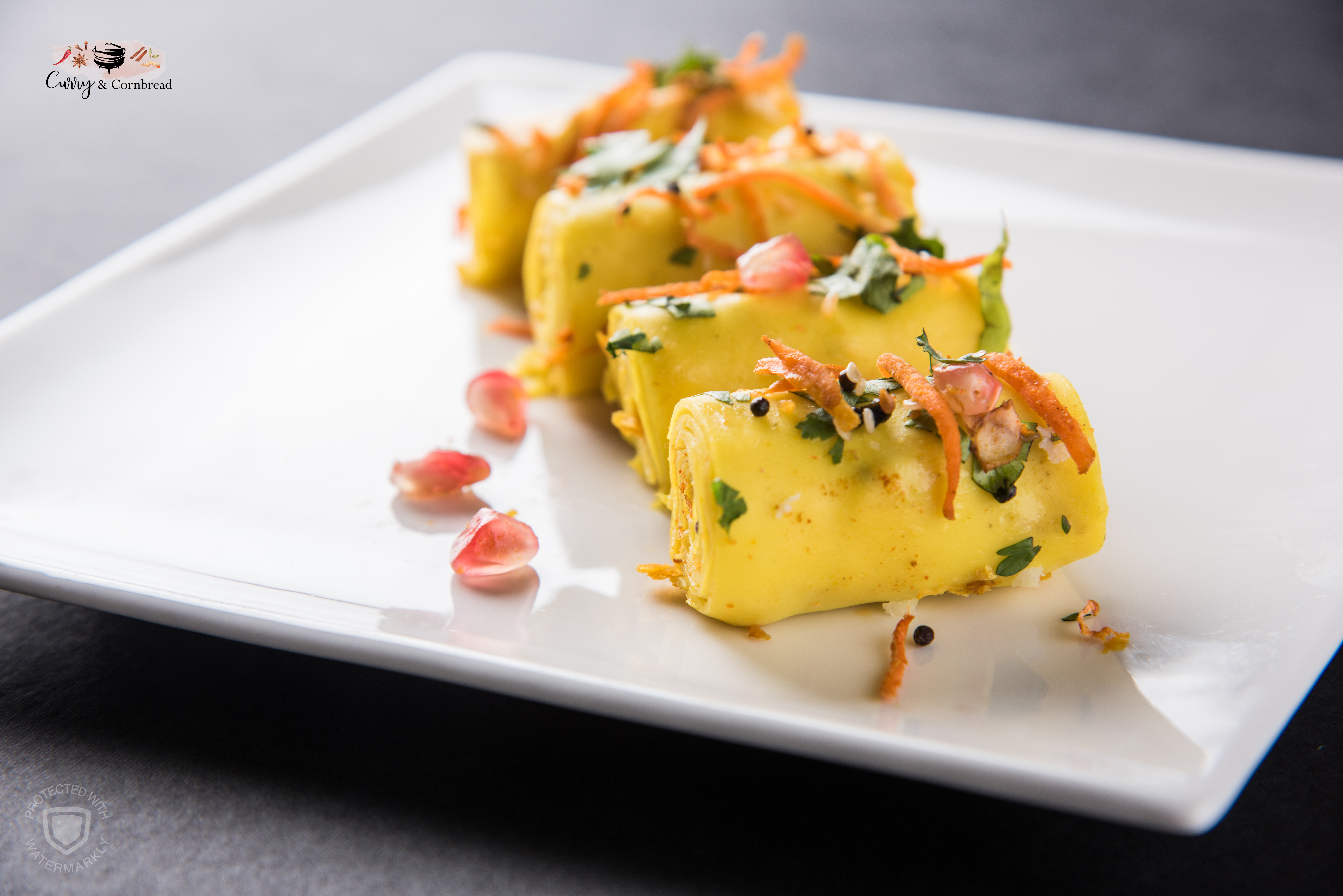 Khandvi is a popular, delicious and gluten free healthy finger food from state of Gujarat in Northern part of India. It is made with plain sour yogurt and chickpea flour. The texture is really soft, silky and melts in your mouth. Making this dish is not easy and for some it may take multiple attempts. It took me a couple of attempts in the beginning to get this right. Now I can confidently say I am a Khandvi rolling machine, LOL! It needs a lot of time and attention but at the end, you will certainly not regret the effort.