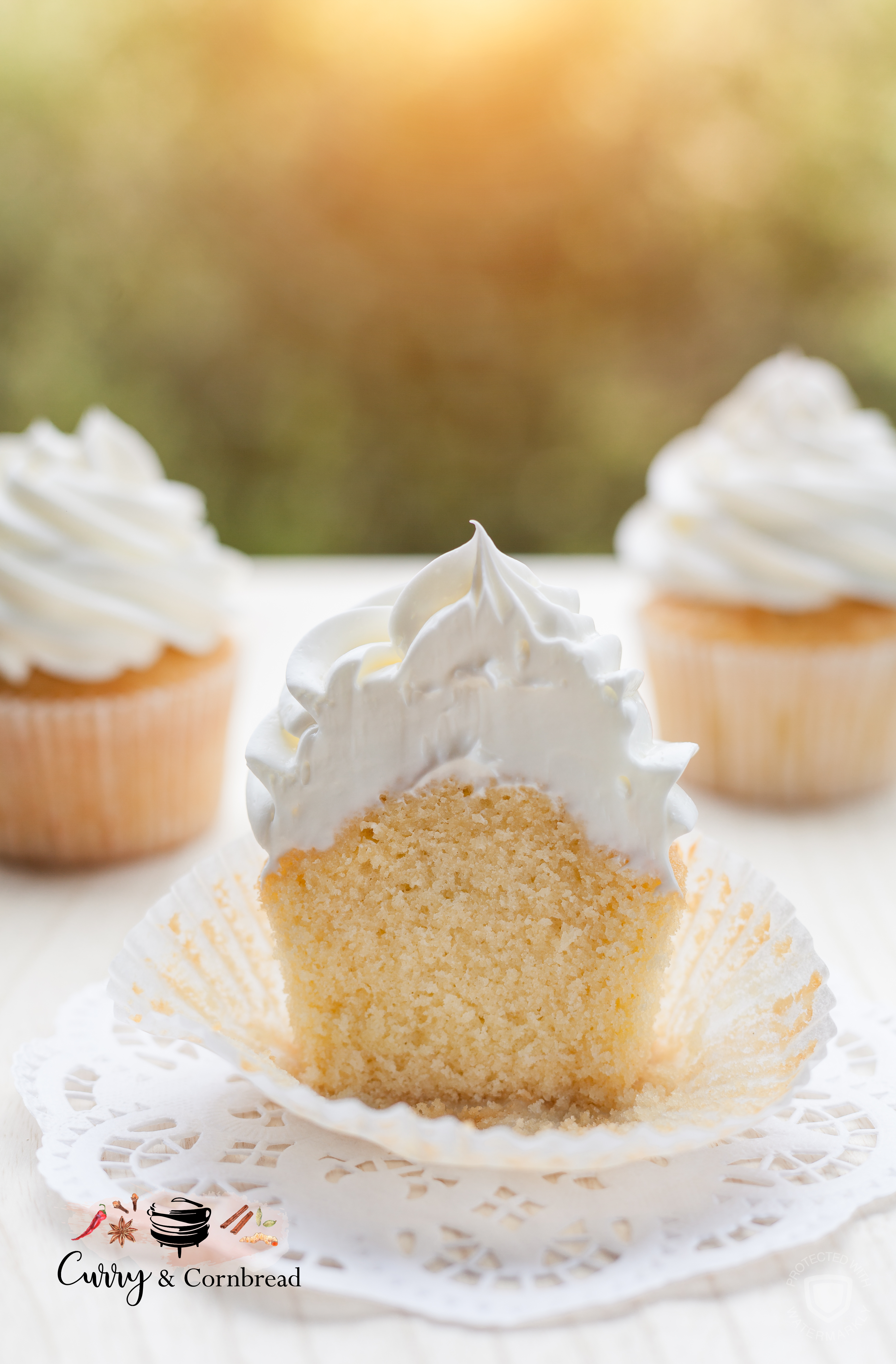 If you have left over cupcakes, you have to store them after they are completely cool in airtight container. If you leave them out in the open air, they will become stale. I have also seen refrigerating cupcakes also affects its texture, so my tip is wrapping the unfrosted cupcakes tightly in plastic wrap and they will stay moist. I would suggest making the whipped icing same day and storing it in the fridge to keep its texture. Ice/decorate cupcakes right before serving.