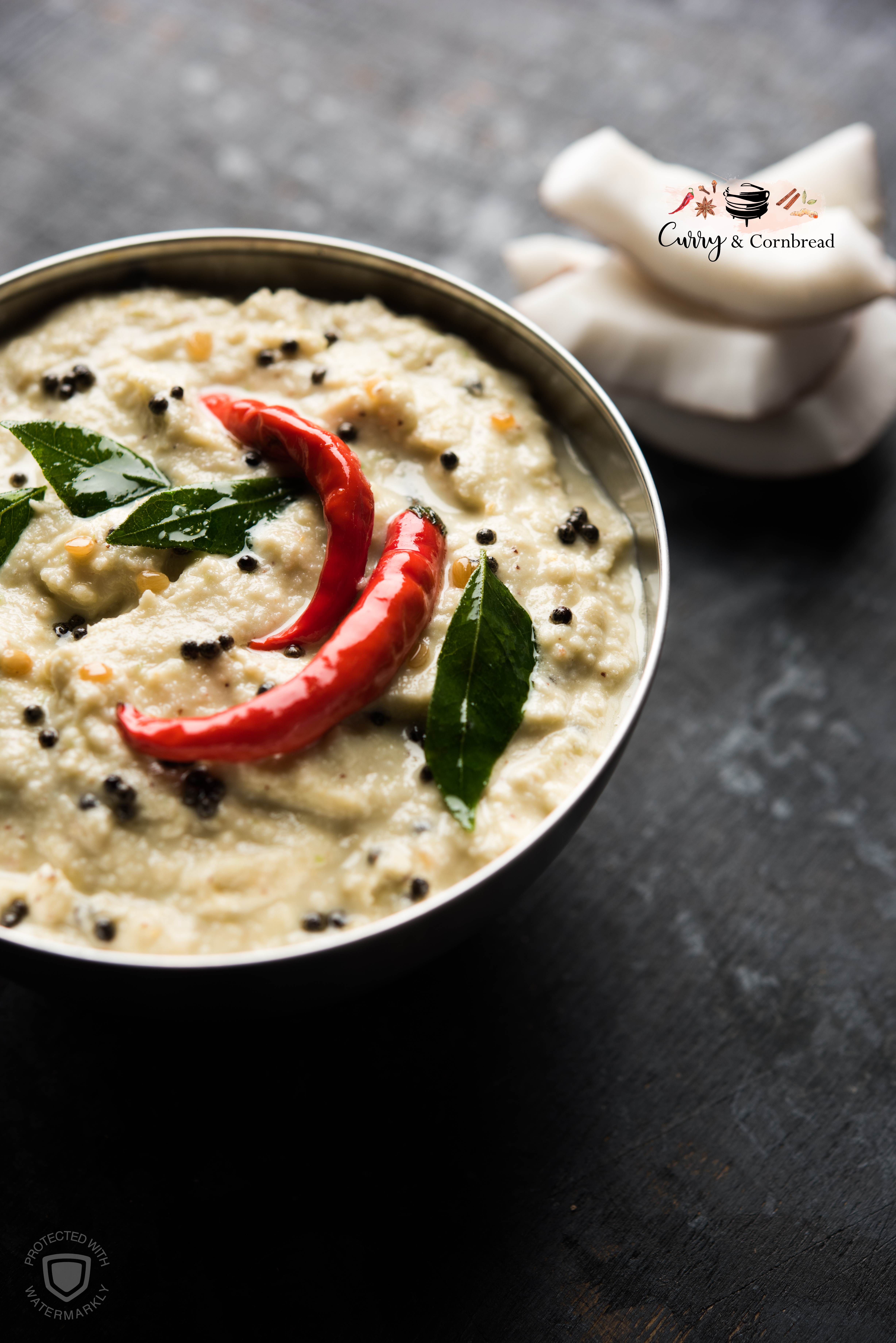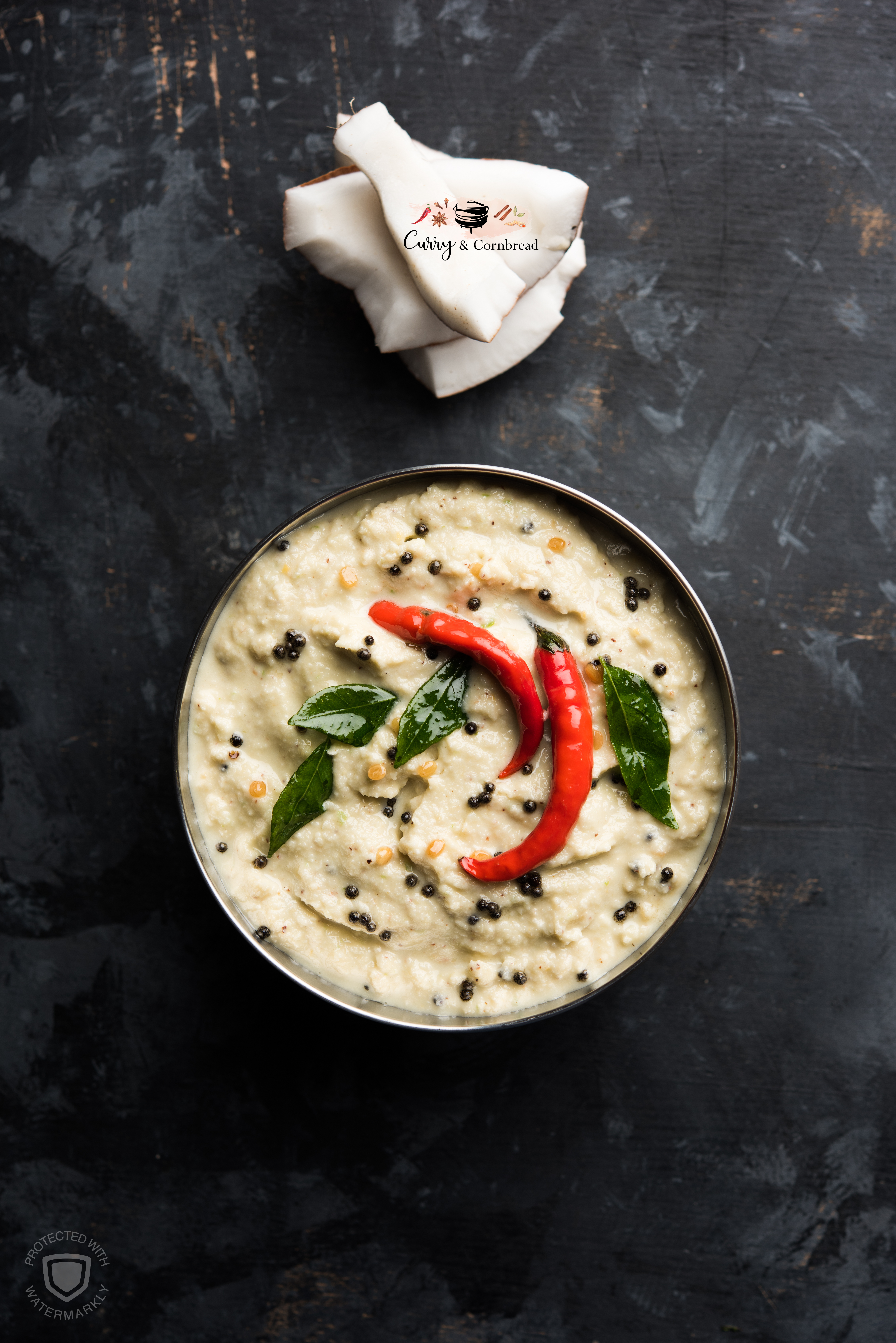 Coconuts are a quintessential part of South Indian cuisine. Most of the meals are cooked in coconut oil, curries are made with coconut milk and most of the chutneys have fresh coconut. This is a basic version of coconut chutney I have grown up eating and am still fond of it. This chutney is very easy and quick to make. It does not have much taste on its own but when paired with an entree, it completely elevates the dish and brings them to life.