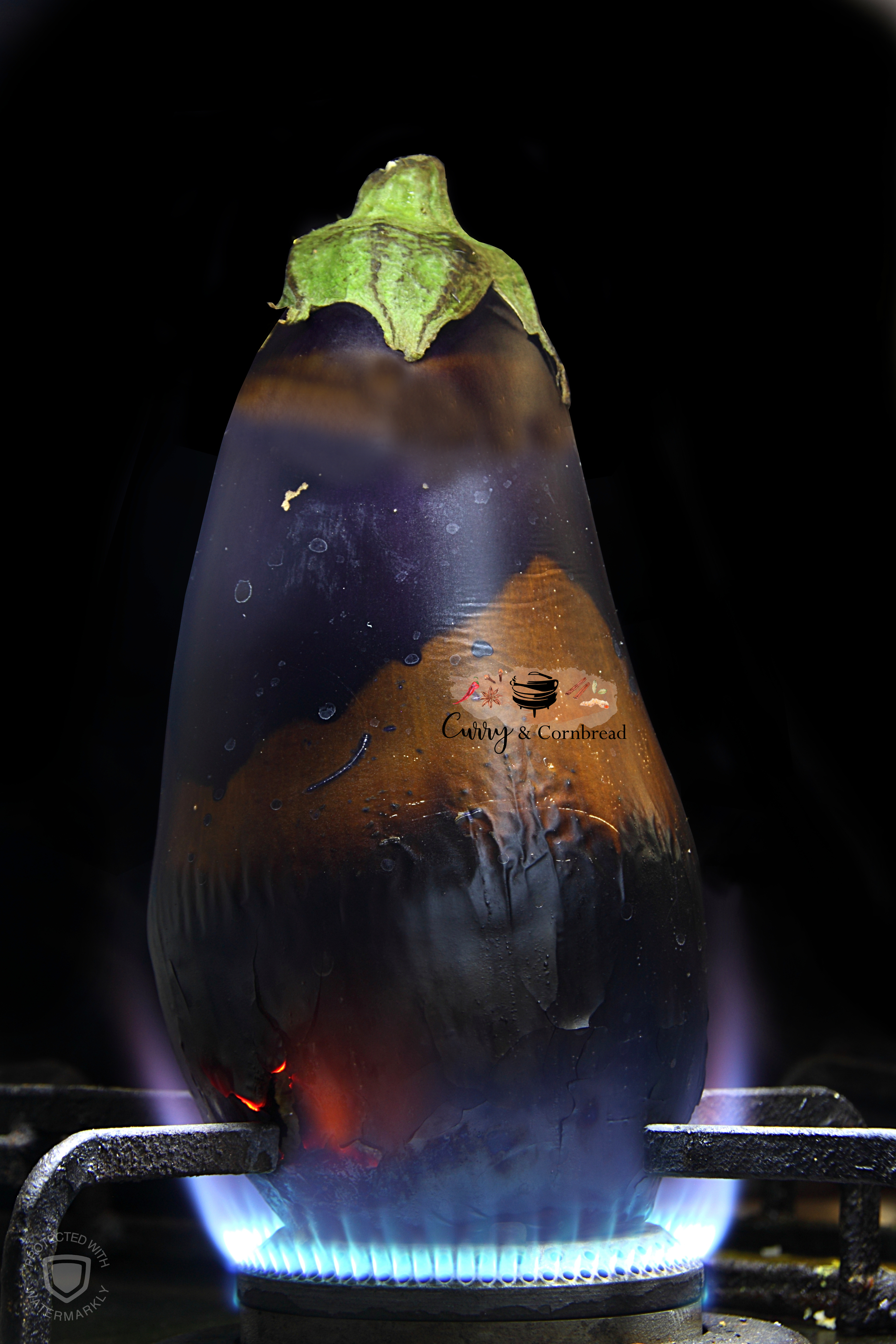 There are two ways you can roast the eggplants to make this curry. Traditional way to get the perfect smokey flavor, you have to cook the eggplants straight on top of your gas stove. You can also bake the eggplants in the oven at 400 F for 40-50 minutes. Make sure to rotate the eggplants while they are in the oven to roast all sides evenly.
