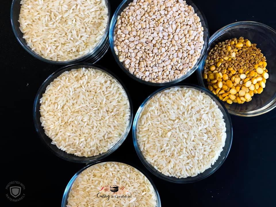Lets start at the basics, the Idli/Dosa batter is made with two main ingredients – Rice and Urad dal.