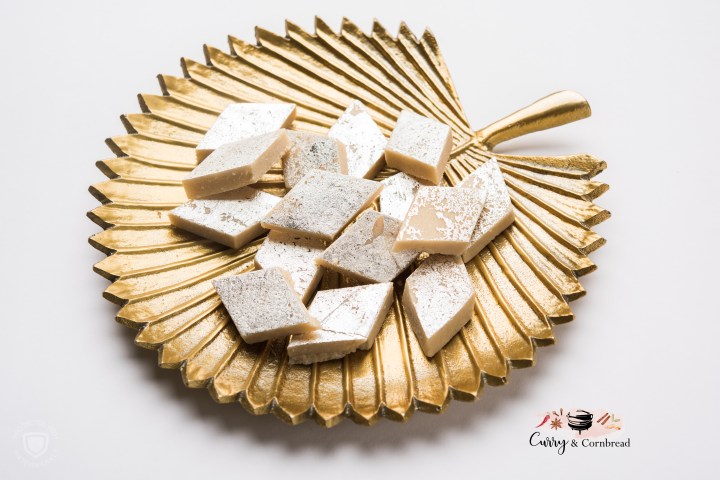By the way, can you guess which sweet is most exchanged during the holidays in India? … … Well lets not keep this a suspense any longer. The most famous and popular sweet exchanged during holidays all over India is called Kaju Katli, AKA Cashew Fudge. Here is the recipe and picture attached below 🙂