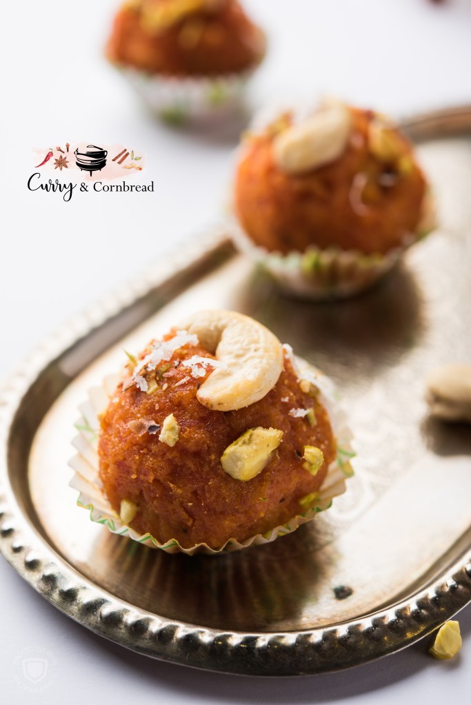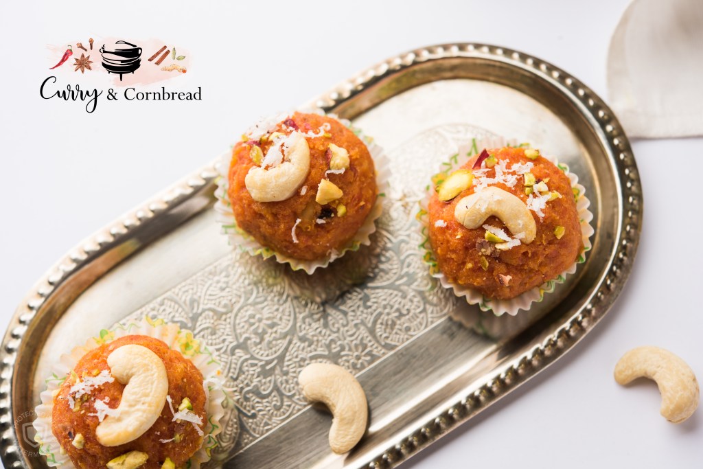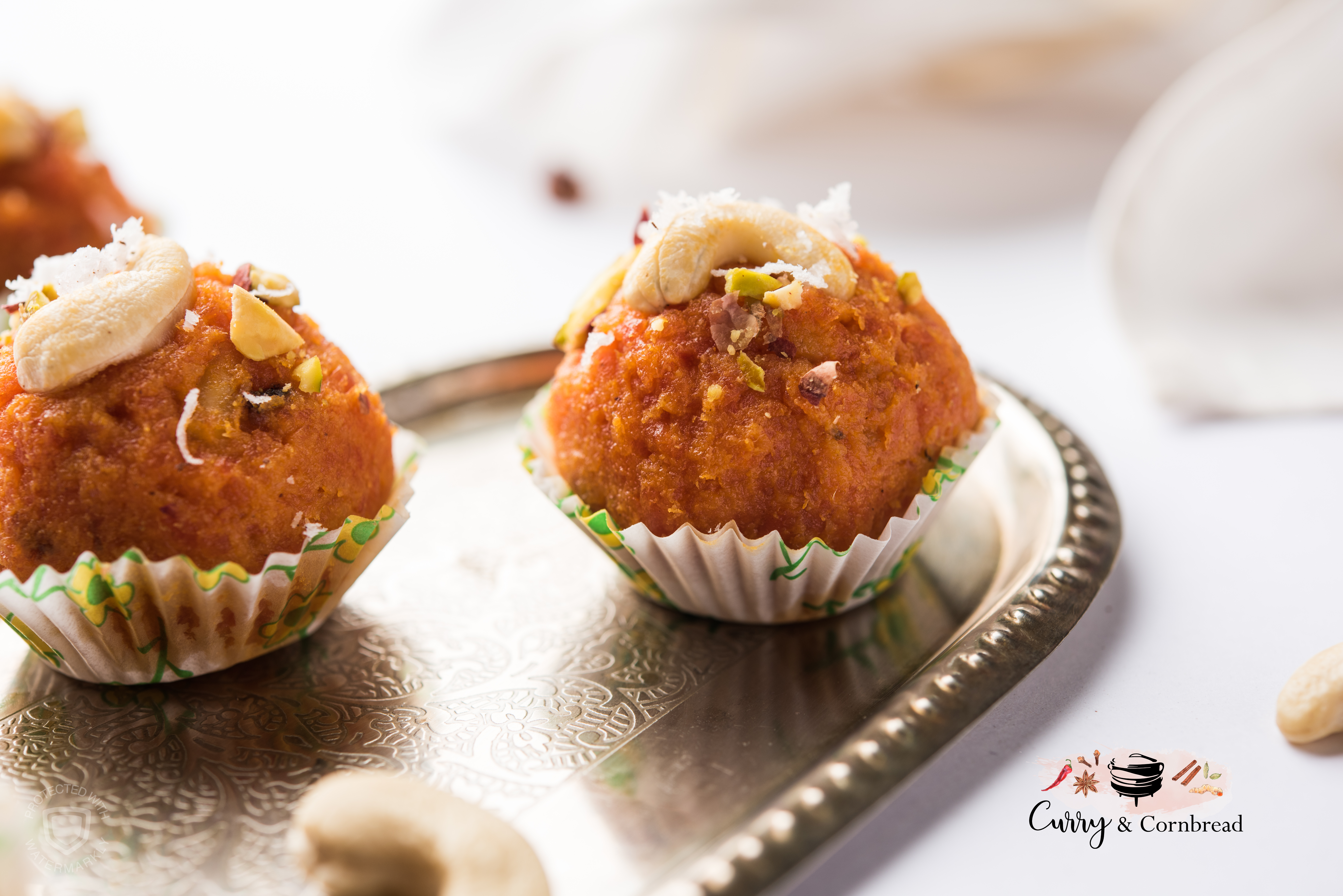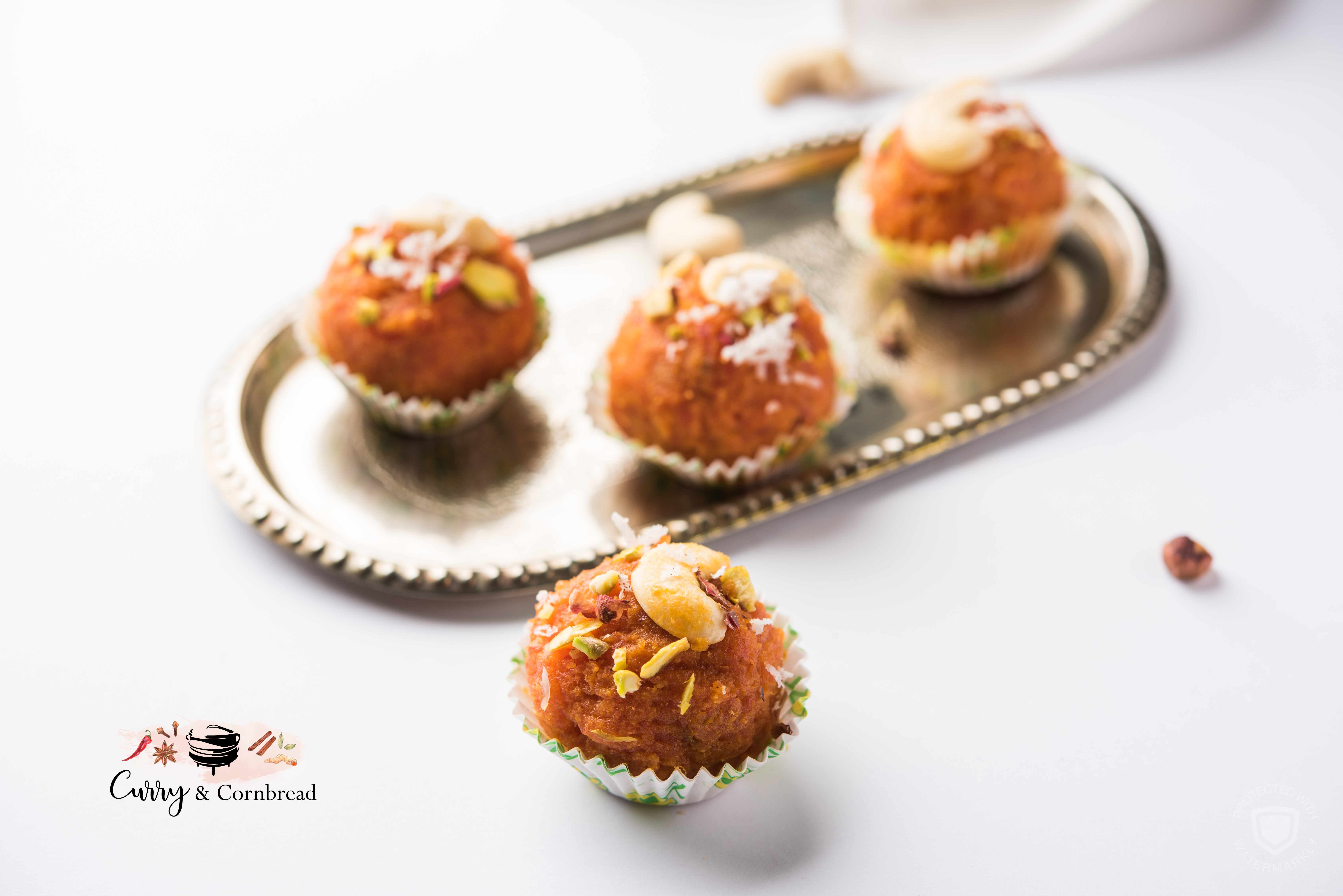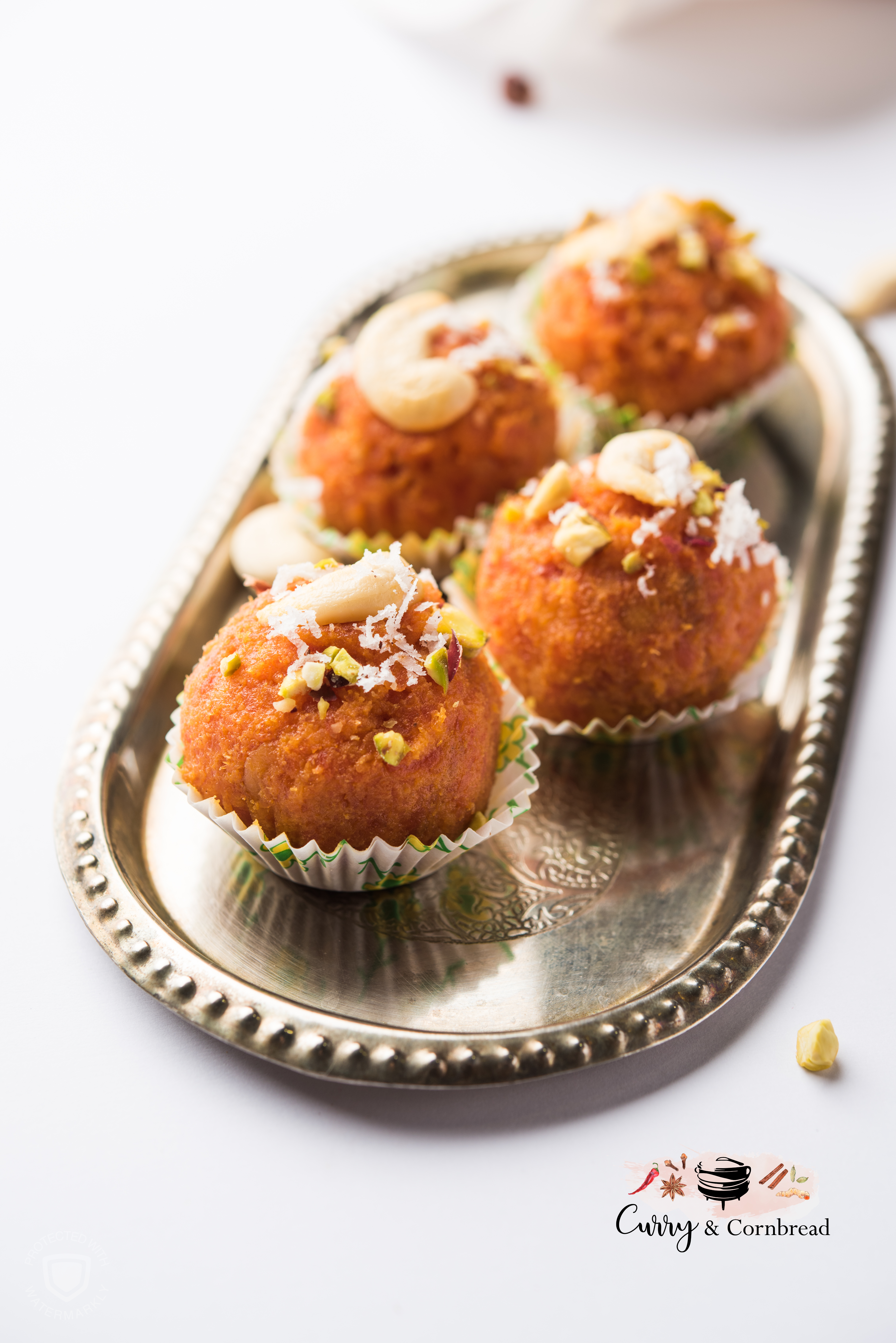 Honestly this was an experiment, but carrots and coconut meld beautifully together into lip smacking ladoos. This recipe is fun because you can involve your kids! My son loves being in the kitchen with me and this was perfect recipe! It is fun to teach him how to roll the truffles and add different coatings. Honestly, you can get creative with the toppings! I love all types of nuts, but you can adjust to your liking. At times I just coat them in coconut vs other times I coat them in different mixture of chopped/sliced nuts. As Diwali less than week away, I highly suggest you add this to your list to make for your family during the festival! If you make this for Diwali, I would love to see your creation! Please share your pic along with feedback!