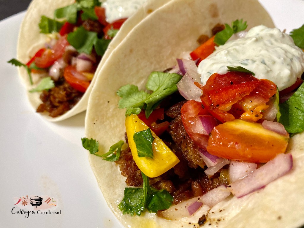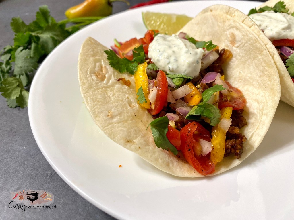 I have confession to make. I never make tacos on taco Tuesday. I mean, I might, but if I do it is totally accidental. But let’s be real, who doesn’t love a good taco! It does not matter what day of the week it is! Taco time is anytime, especially they are great for weeknight meal because they are easy to make and quite delicious! A healthy helping of plant-based power for you today! Vegetarian tacos made with plant base meat substitute. They are lightly spiced, crumbly, and packed with protein and fiber! These tasty tacos can be made in less than 30 minutes.
