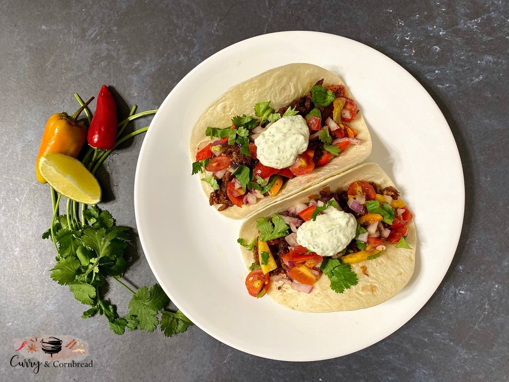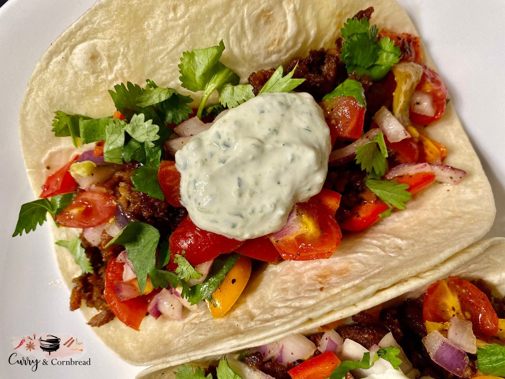 Plating – Warm up tortillas on gas stove or in microwave for 10 seconds. Plate warm tortillas. Layer with taco stuffing. Add pico de gallo and dollop of garlic-cilantro-lime crema. Squeeze some lime juice and drizzle with some hot sauce as desired prior serving! Serve it warm!