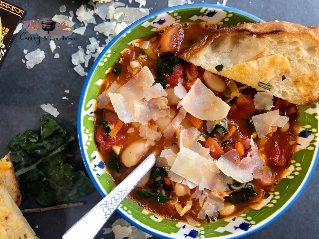 Something about the winter is magical to me. The arrival of sweater weather, the advent of the holidays, the crispness of the air, the bountiful produce, and soup season. This healthy Italian style vegetarian bean soup is perfect for this kind of weather and my all-time favorite soup to make! It is the kind of recipe that has everything but the kitchen sink in it – but that’s what I love about vegetable soups. Tons of vegetables, herbs and an abundance of flavor.