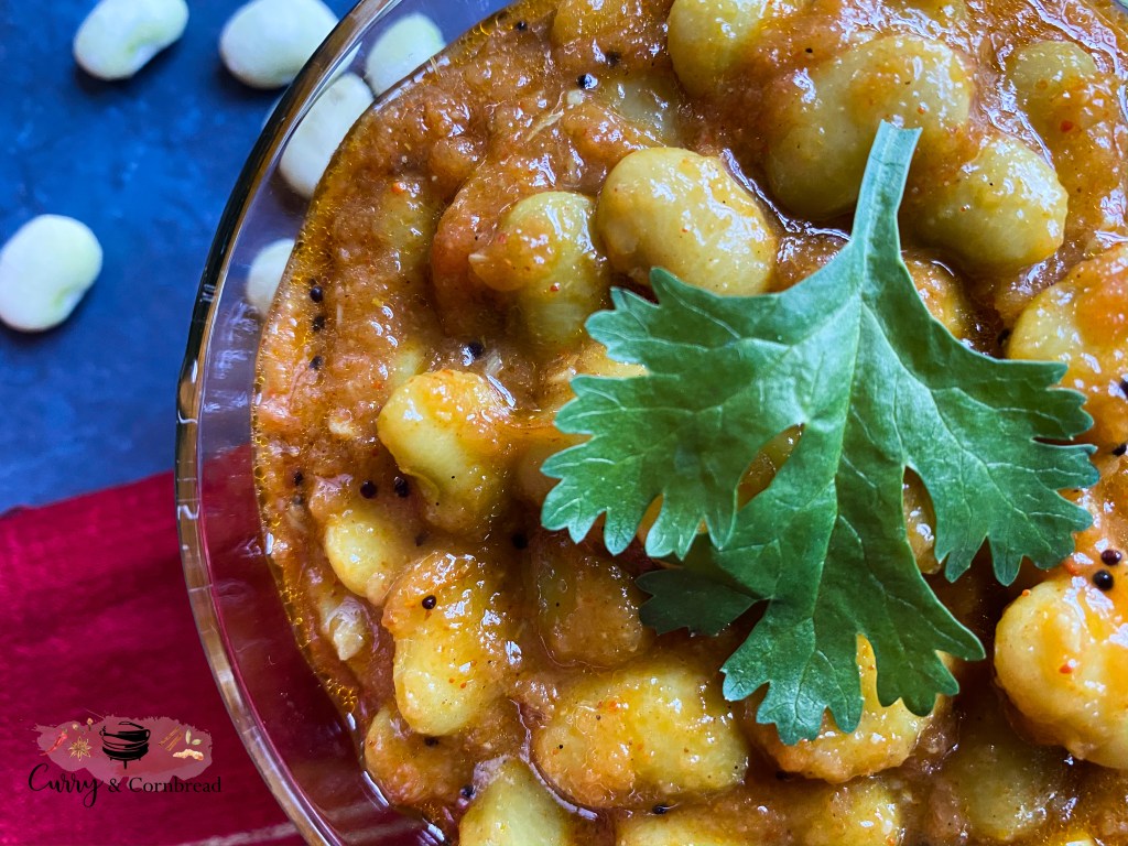 As today is first day of February, it’s time for another bean curry recipe to continue my monthly series. I am hoping to inspire you all to start cooking different legumes and beans, because they are the richest plant source of protein available and especially abundant in the amino acid lysine, which is essential for bone health. Here is my take on Lima Bean Curry, which is quite different compared to traditional Gujarati Lima Bean Curry (Vaal nu shak). There is traditional Lima Bean Curry that uses dried beans and has unique sweet and sour tang to this dish. The dried Lima beans take long time to cook, hence mostly recommended to soak the beans in water overnight. Today I am using fresh baby Lima beans from the frozen section and giving it twist to the traditional recipe. This quick delicious spicy curry can be instantly made in instant pot or pressure cooker within 20 minutes and can be perfectly served with rice or roti.