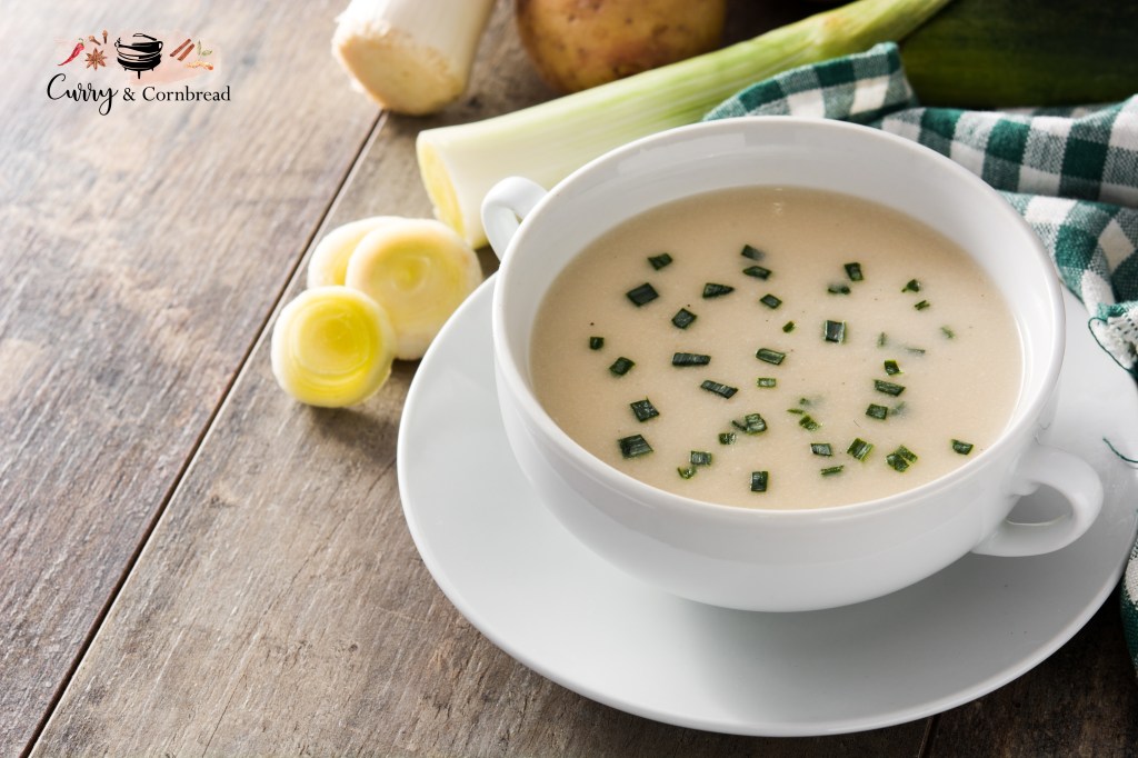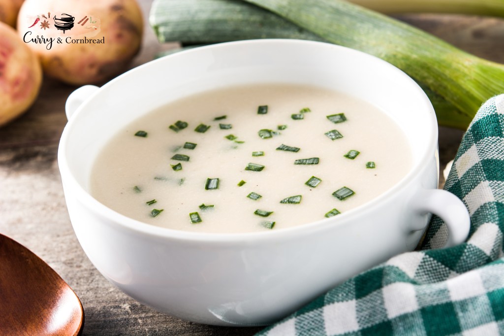 Press the sauté button on the instant pot. Once hot, add in butter. Once melts, add leeks, garlic, and sauté until translucent. Add broth, salt, pepper, cubed potatoes. Mix thoroughly, close the lid on the instant pot and seal the vent. Press the manual or pressure cook button. Set it on high setting for 7 minutes. Once the cooking is done, let the pressure release naturally and puree with immersion blender. Add spices/seasoning as needed. Stir in sour cream and garnish with chives. Serve hot or chilled. I love topping mine with fresh herbs and croutons.