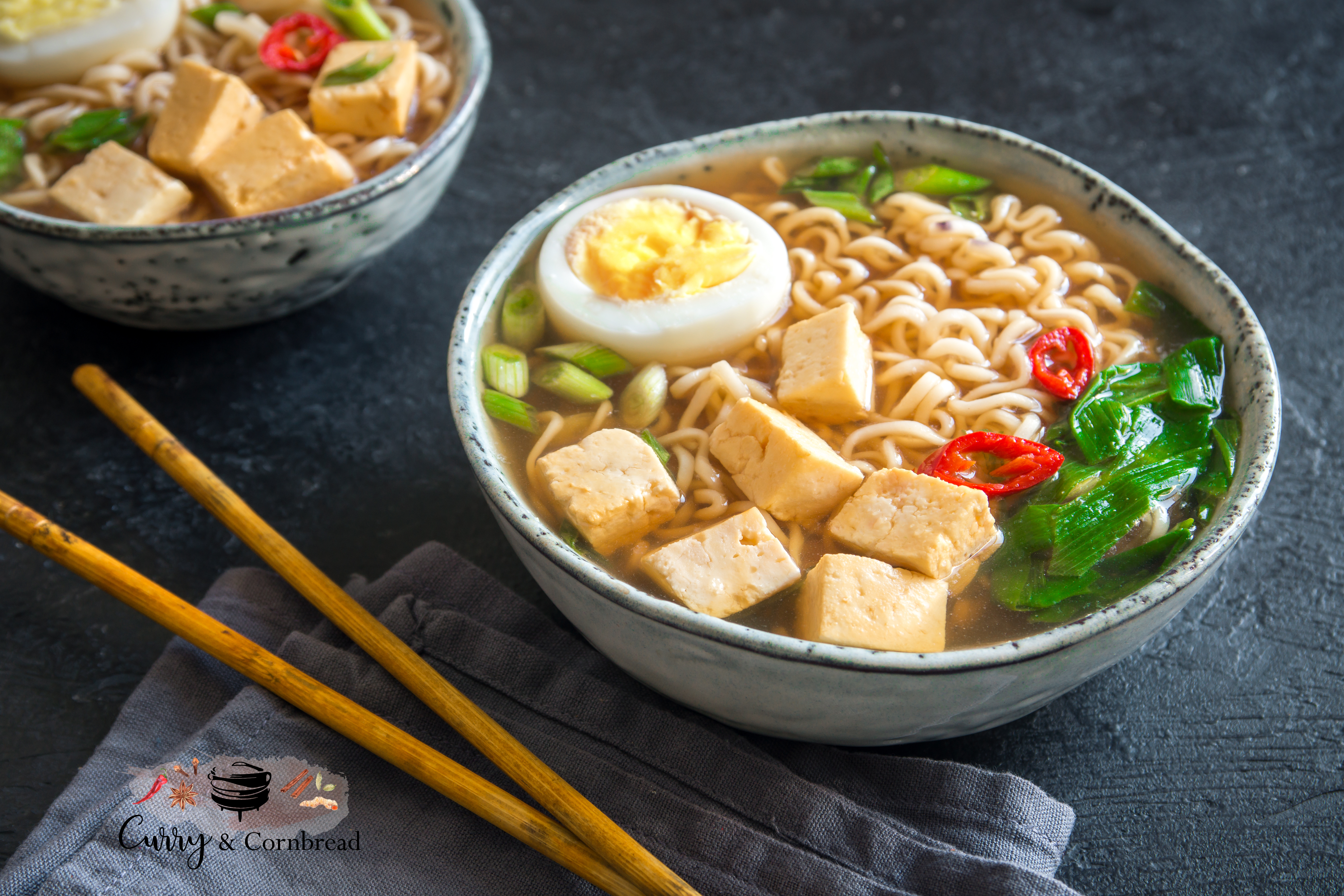 Prior making the broth and noodles, prep all the ingredients. Chop all the veggies, press tofu to remove excess water, and boil eggs.