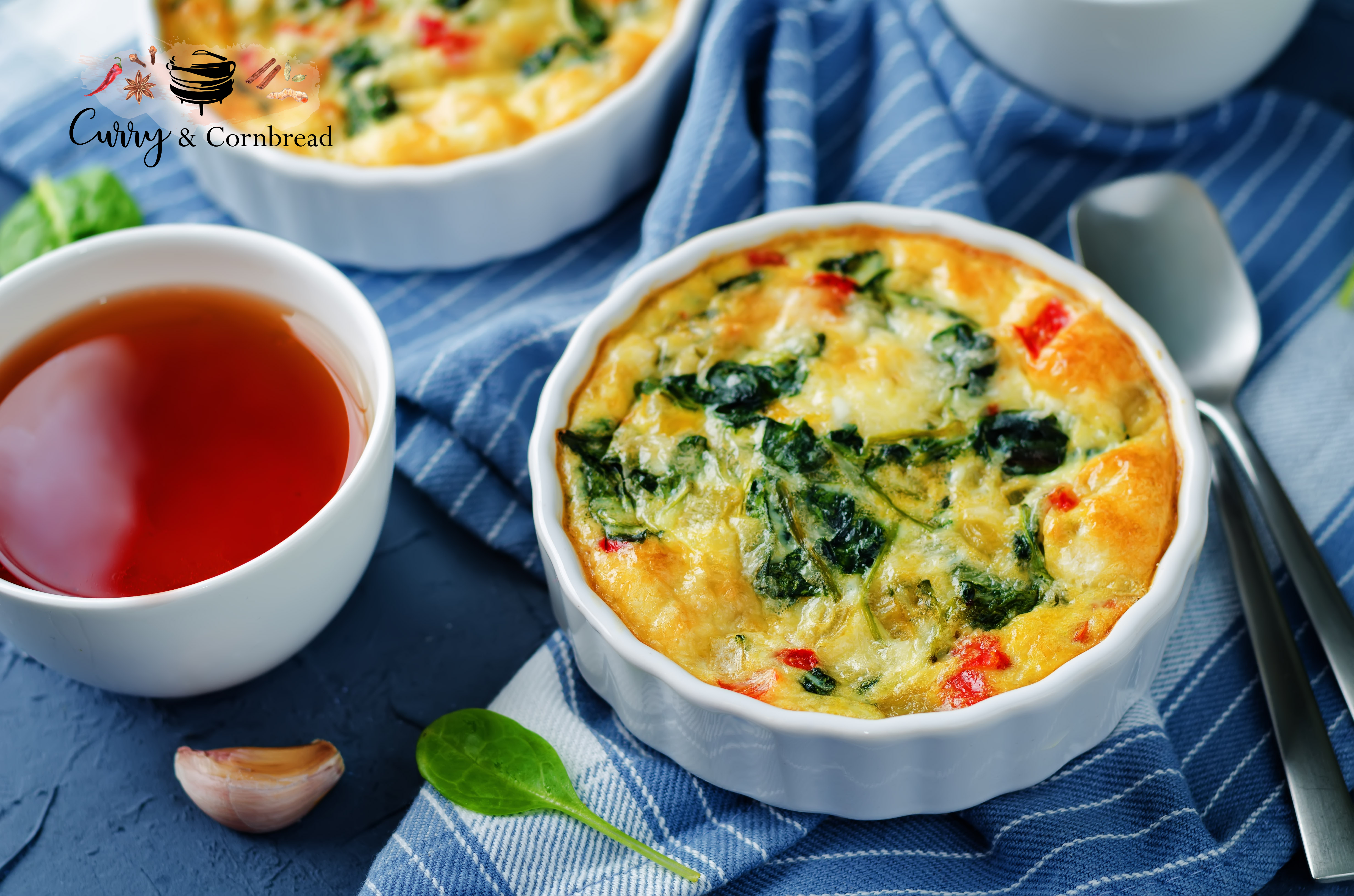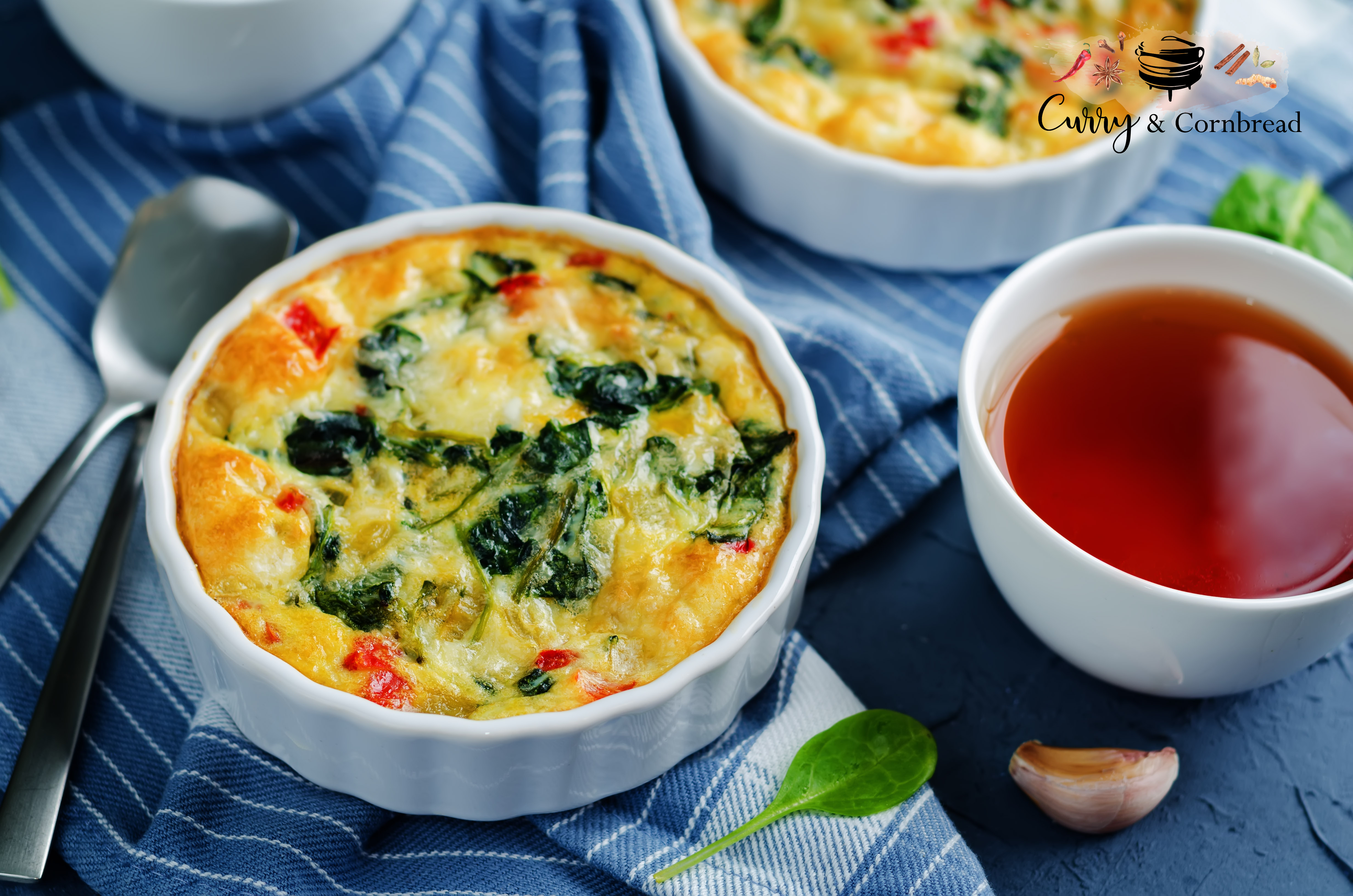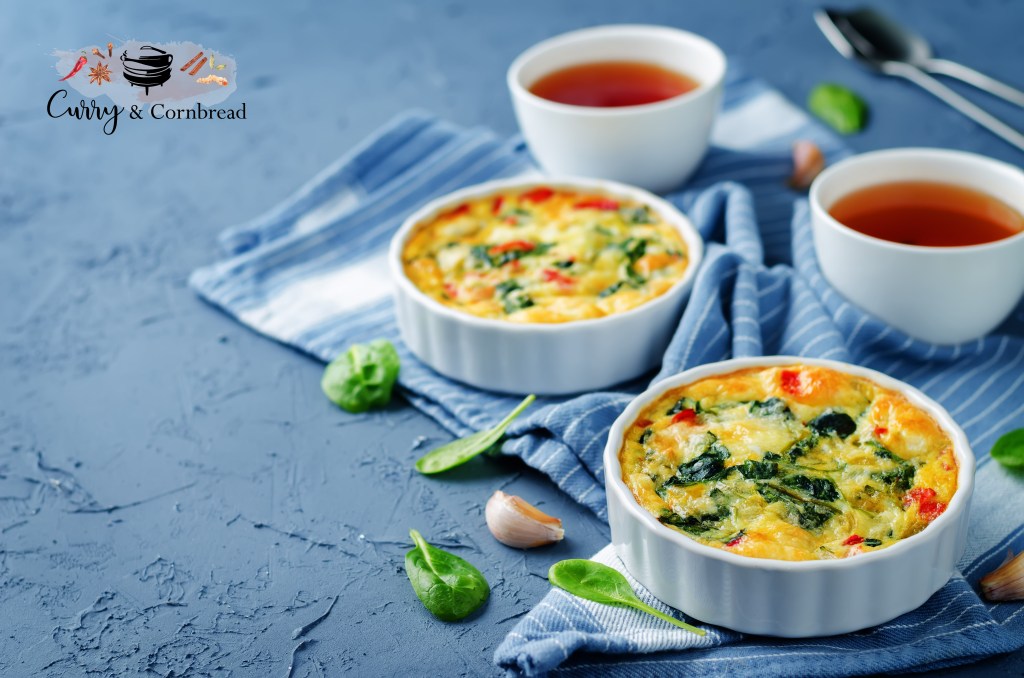 Whisk all your eggs together with cheese and seasonings. Pour the egg mixture over the veggie mixture in the baking dish. Bake for 20-25 minutes if you are using 9×9 size pan and bake for 10 minutes if using ramekins or until the egg mixture is cooked through. Let it cool for 5 minutes before serving.