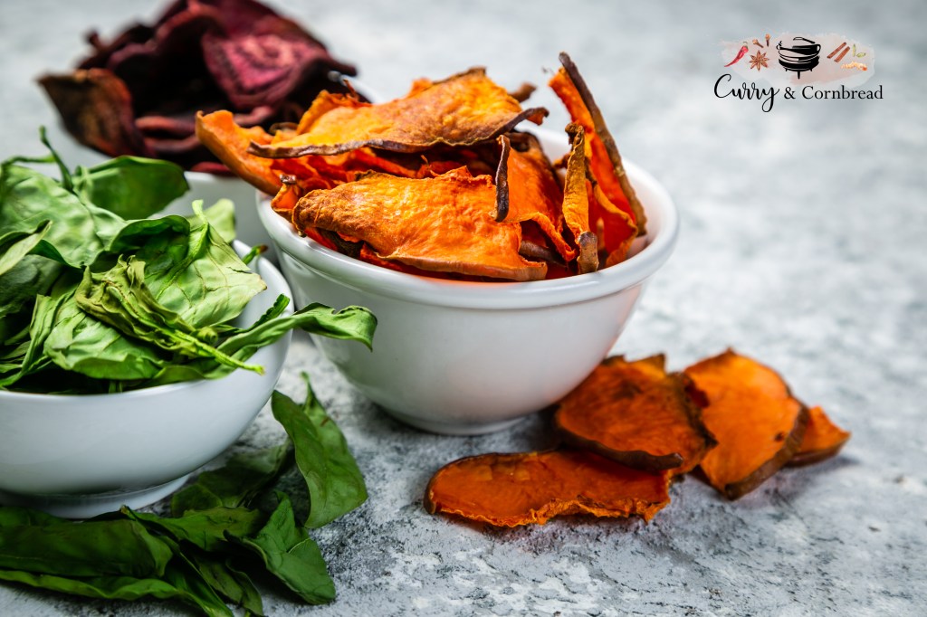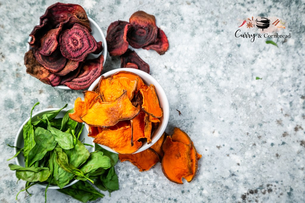 Lately with everyone mostly at home, it becomes difficult to find healthy snacks to have during the day and it gets boring having the same foods. When I am trying to stick to a clean diet, it is the crunchy stuff that tempts me the most and I can’t seem to keep my hands away from them without creating a distraction for myself. I have been really good for 3 weeks, but today I had to make something for me. When it comes to salty junk foods, I am sunk. That’s where homemade baked chips come in.. We have heavy snacking habits and the tendency to not get enough veggies in during the day, so this recipe tackles both of those in an enjoyable way. We have been snacking on this today and I am bummed that our stash is almost over.